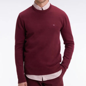 For the fall-winter season, our classic 100% cotton crew neck sweater is reworked in a thicker knit for a warm fit and a beautiful volume effect. This knitted sweater, available in several colour options, still stands out with its emblem embroidery, its neat ribbed edges and its two-tone striped inner half-moon, a finish that demonstrates the attention to detail of our workshops, like its contrasting knitted neckband. A soft and warm sweater while remaining light, ideal for snuggling up in from the first cold days Regular straight fit Round neck Chest embroidery bow tie Ribbed finishes Two-tone striped inner half-moon Contrasting knitted neckband.