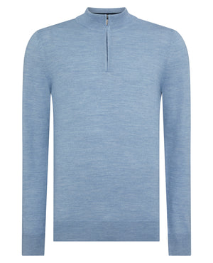 SWEATER-LS Half Zip Sweater - LS Half Zip Sweater-Light Blue SWEATER-3/58401/23 Blue